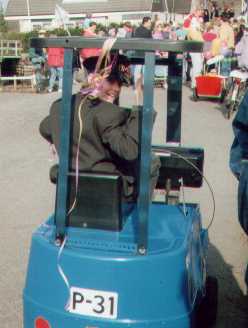 Peter op de plastick heftruck